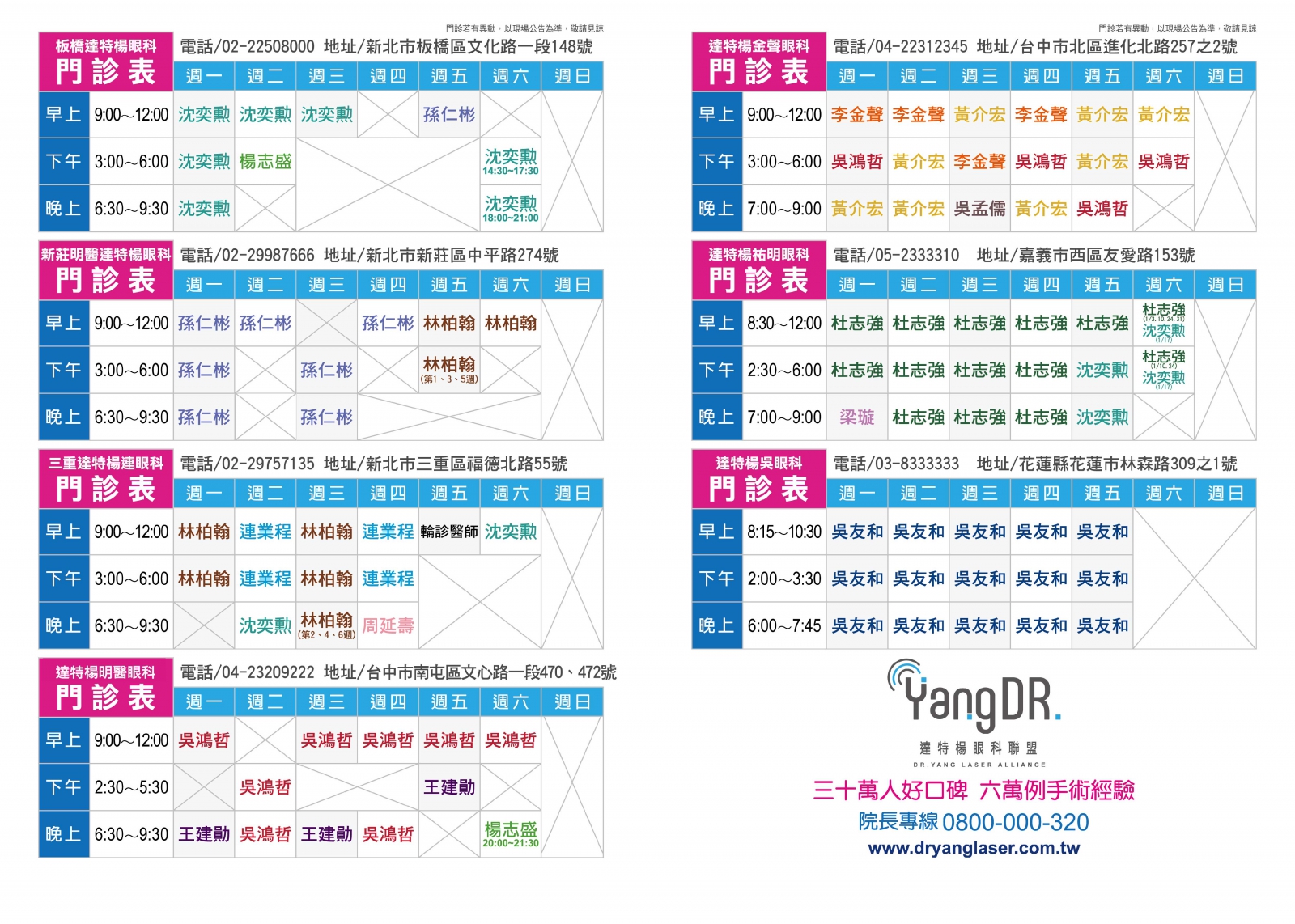Home最新消息院所公告 2026-01-01 院所公告達特楊1月份一覽門診表 分享到Facebook 分享到LINE 複製此頁連結 ※ 門診情形若有異動,以現場公告為主,敬請見諒 ※ 2025-12-26 😱 飛蚊症別輕忽!中年男視力一度剩0.1,差點失明⚠️ BACK